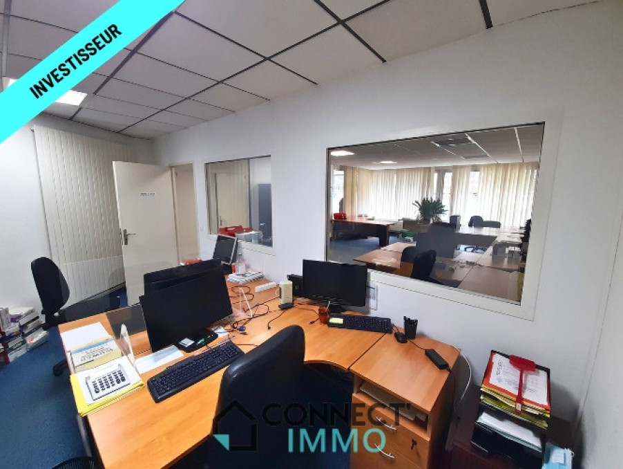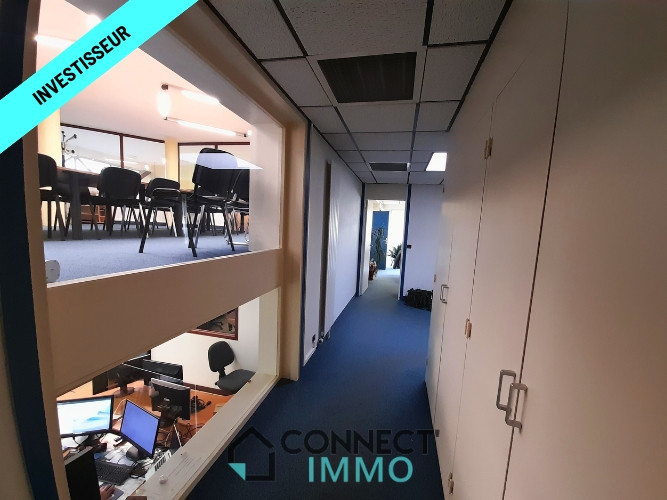 L'Agence CONNECT' IMMO vous propose ce superbe immeuble de rapport bien entretenu, construit sur dalles bétons dans les années 1980, disposant potentiellement de 3 appartements (T1 au T3), et d'un spacieux local commercial moderne et lumineux entièrement équipé de bureaux Open-space, et bureaux de direction avec une salle de réunion. Surface totale d'environ 565 m². Cour goudronnée et garage fermé.