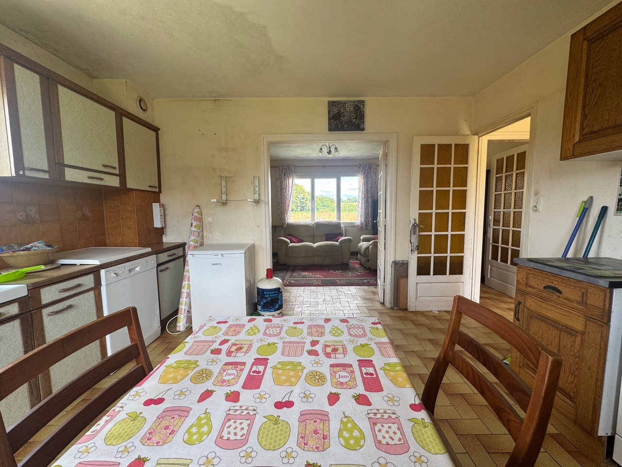 Au rez-de-chaussée : entrée, cuisine séparée et dinatoire, séjour/salon avec POÊLE à bois, 2 chambres, salle de bains et un WC.
